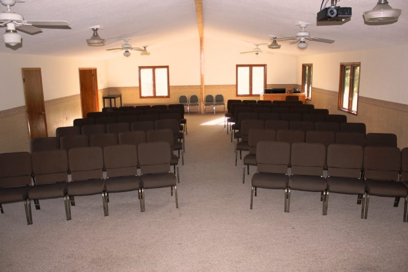 With capacity for 120 people, our Chapel is the primary meeting spot at camp for worship, announcements, and sometimes even indoor games. Our sound booth offers (1) control over several different instrument channels, (2) a Windows computer with internet access, Microsoft Office, and Mac compatibility accessories, and (3) the ability to project slides, videos, and more onto a 75″ LED television. The downstairs of the Chapel has bathrooms, showers, a pop machine, and a game room.