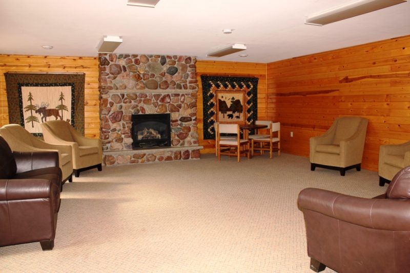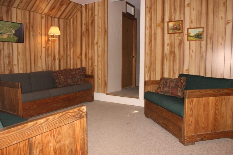 The Cove is our most popular small meeting area and can be set up with chairs and/or tables depending on your group’s need. It also has an electric piano, ktichenette, bathroom, and a projector. Other small meeting areas include two lounges in the upstairs Lodge, the fireplace lounge in the Dining Hall, and the common areas of our modern cabins.