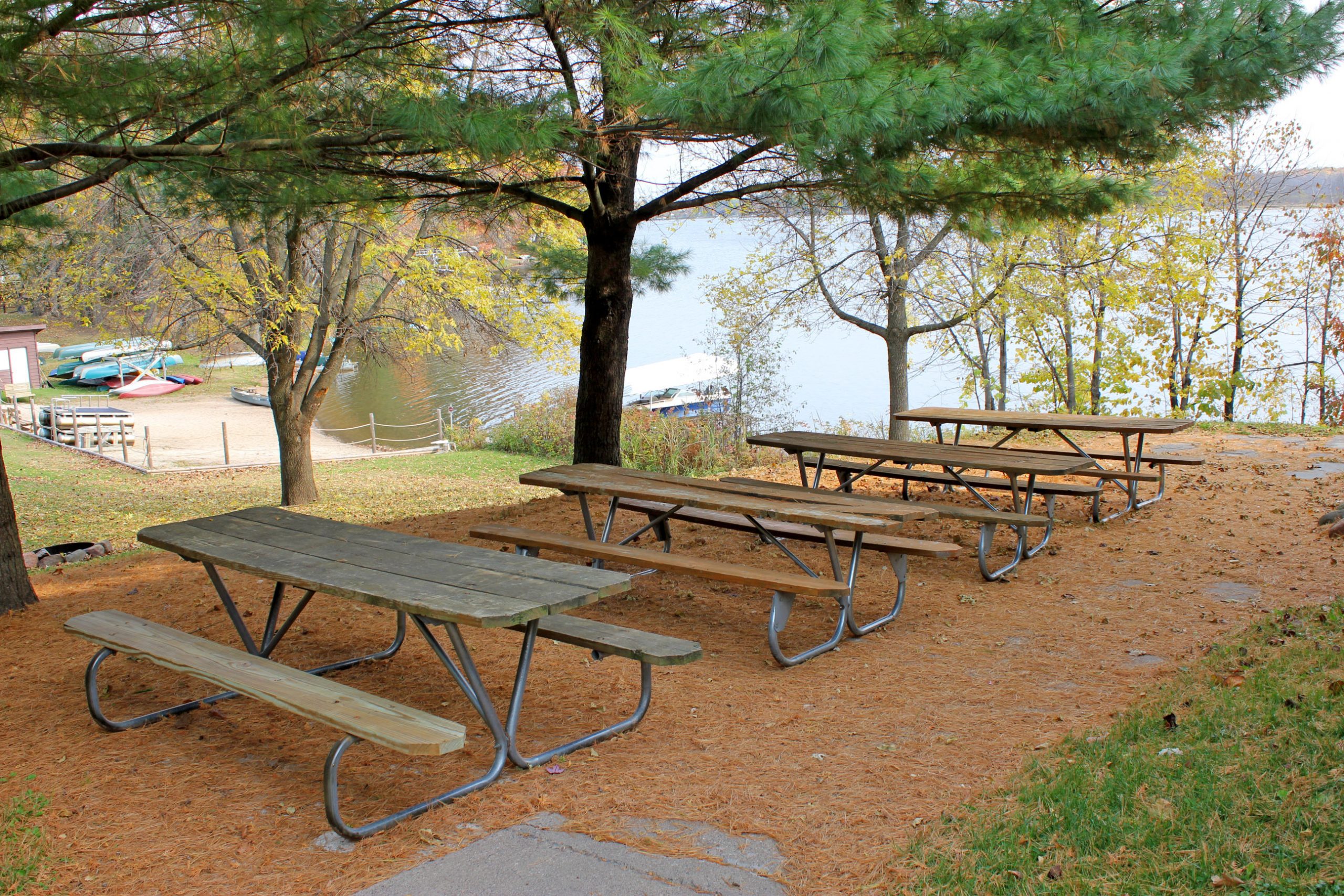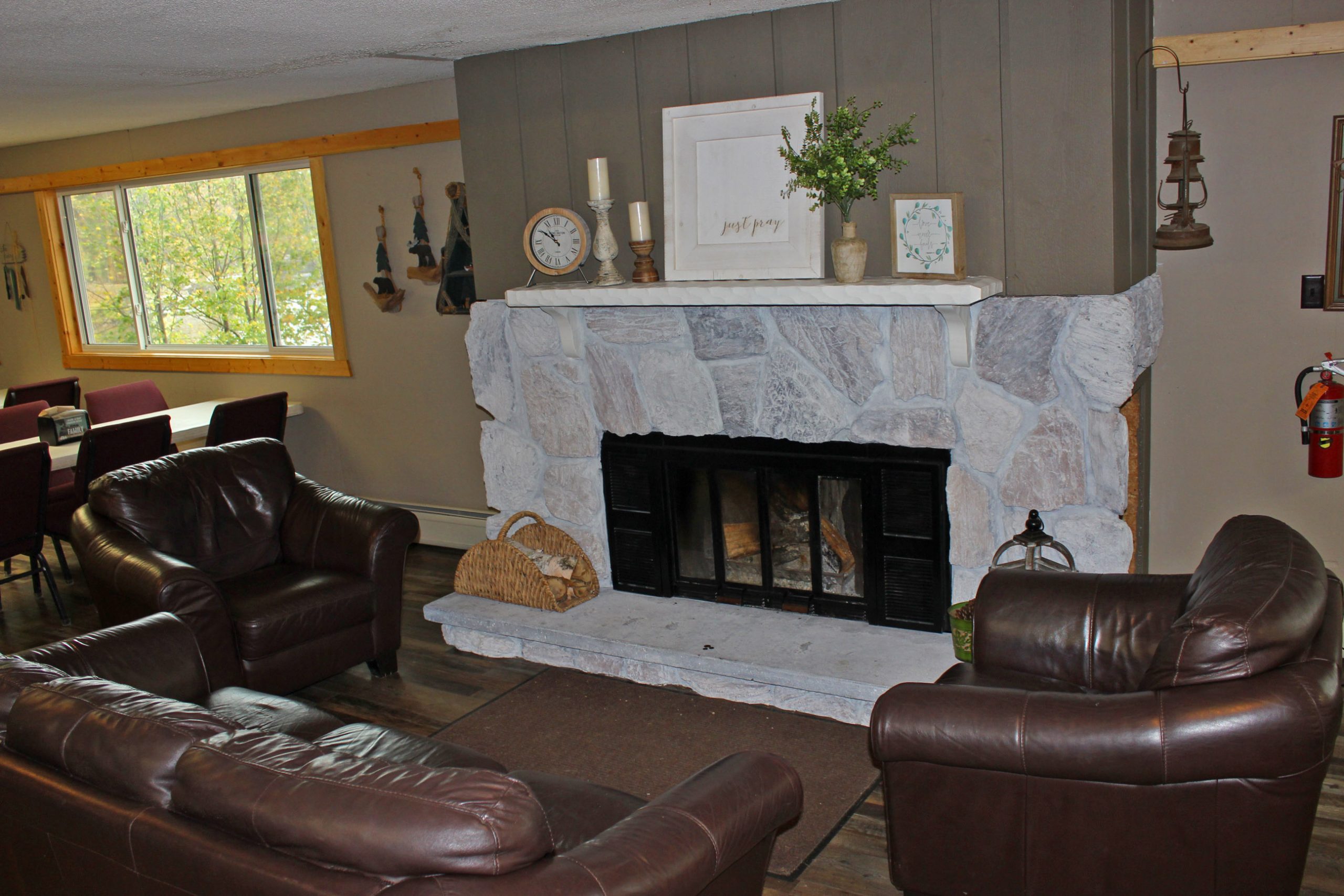 Outside the lodge there are picnic tables for groups to meet, hang out, or eat at. Around camp there are also three different fire pits with Adirondack chairs or benches for you to use any time of the year!