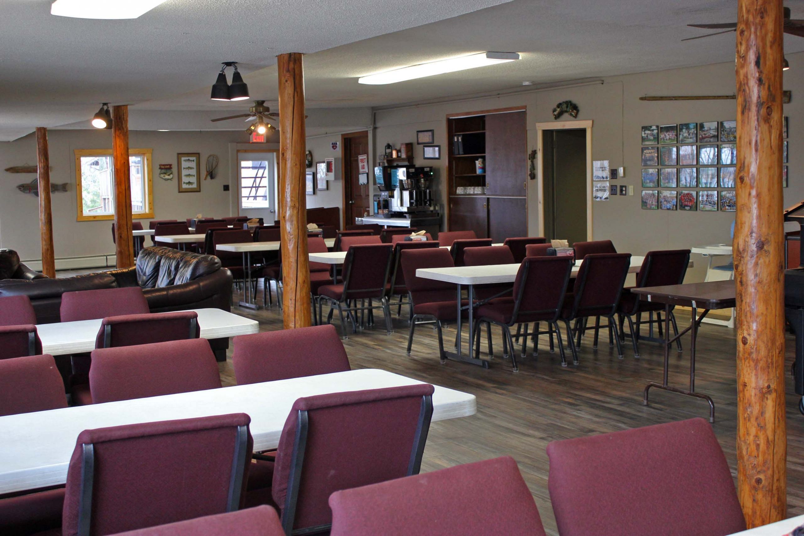 The Dining Hall is a favorite location for groups to gather and relax. There is a cozy set of couches around our fireplace, as well as plenty of tables to spread out and chit-chat or play games. Additionally, our hot drink station is located in the Dining Hall.